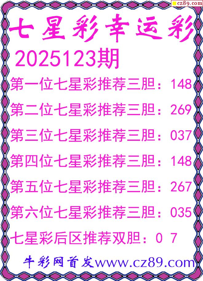 首页 > 七星彩预测 > 七星彩2025123期幸运彩三胆图谜